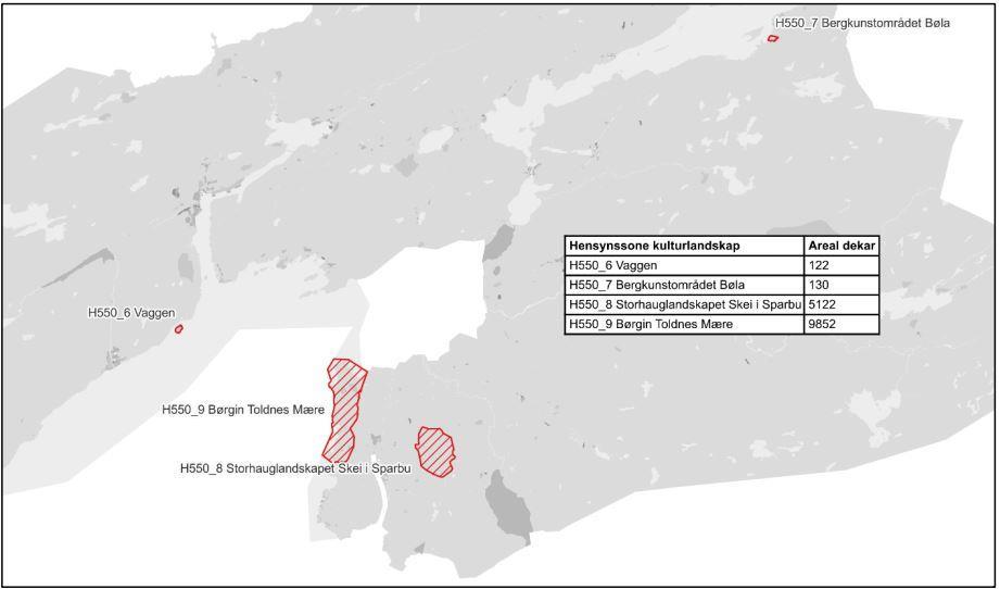 Etter dialog med fylkeskommunen foreslås det å avsette områdene med hensynssone H550 – Bevaring kulturlandskap. I tillegg til de nye hensynssonene foreslås det innført en felles retningslinje som skal gjelde for samtlige områder avsatt med hensynssone H550 – Bevaring kulturlandskap: